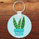 This cute potted cartoon snake plant succulent key chain has a white stripes and blue background. Fasten this cute button to your backpack or purse for a pop of fun.