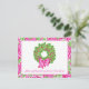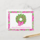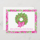 Cute Preppy Christmas Pink & Green Wreath Holiday Postcard