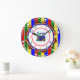 This red, blue, yellow and green train themed clock would be a cute addition to a little boy's room or a baby boy's nursery.