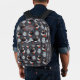 Adorable Puffin Birds on Chequerboard faux quilt-like pattern, wonderful backpack for fans of these cute chubby birbs! Unique whimsical art design!