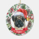 Cute Pug Dog Custom Santa Hat Christmas Ornament
