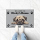 Personalise this fun doormat with your favourite canine or pet, leave the existing graphic or replace with one of your own, edit the text to anything you want when you order.