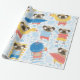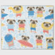 Cute pugs on vacation. pattern with cartoon pug on wrapping paper