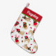 Christmas Pugs Stocking, Cute Pug Dogs in Festive Holiday Outfits with a White Background with Custom Name.