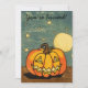 This cute Halloween design features a jack-o-lantern pumpkin against a starry sky with a full moon. Image has a worn texture for a vintage look. Customise the text for a perfect invitation to your party or event.