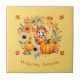 Cute Pumpkin Fairy in Autumn Wreath Tile