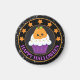 Cute pumpkin Halloween cupcake with a black glitter background and orange stars