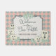 "Welcome to Our Patch," a cute decorative Halloween doormat featuring adorable country jack-o'-lanterns. Celebrate Halloween with these matching pink, grey, and pastel Halloween party supplies and holiday decor. Create a sweet and fun Country Halloween aesthetic that everyone, including children and families, will enjoy.