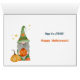 A little bearded gnome with a wizard hat sits in a pumpkin wagon on the front of this cute Halloween card. Around him is a pumpkin patch with a "Happy Halloween" sign, a flying bat, and a spooky tree. The text at the top says "Trick or Treat?", and the sentiment is continued on the inside, along with another gnome image. All the text is easily changed to anything else you'd like. Fun for kids and adults, too!