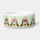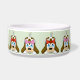 Cute Puppies with big blue eyes, Big brown floppy ears, a wagging tail and alternating bows of red and pink with purple polka dots makes up this cute pet bowl. As adorable as these little guys are I'm sure your furry friends is even cuter. Customisable so you can change the background colour or add text.