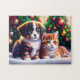 Cute puppy and cat under Christmas tree Jigsaw Puzzle