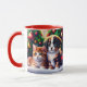 This Christmas Mug features a cute puppy and kitty under the Christmas tree in vintage style. Wonderful, custom gift idea for your loved ones - family and friends. Designed by AIbyMarion