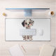 LOVE this desk mat! It's large! It fits across my desk. No need for a small mouse pad now! Color and print are excellent. Quality seems to be excellent too. Delivery was about 3 days sooner than expected. I think this is one of my favorite Zazzle products! Excellent. The color is vibrant and true to what I expected.