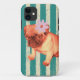 cute puppy daisy green stripes sad pug Case-Mate iPhone case