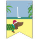 This fun bunting features a cute dachsund on a beach with palm trees. Check out our matching tableware and invitations to make your Christmas in July celebrations unique.