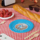 Cute Puppy Dog in Blue Scarf Happy 1st Birthday Paper Plate