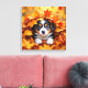 Cute Puppy Dog in Fall Leaves Canvas Print
