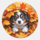 Cute Puppy Dog in Fall Leaves Classic Round Sticker