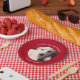 This adorable paper plate features Olive, a cute Labrador mix and customisable text.