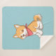 Cute Puppy Dog Shiba Inu on Blue Sherpa Blanket