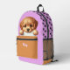 Cute Puppy Eating Homework Pink and Brown Printed Backpack