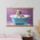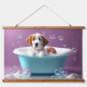 Cute puppy in a bathtub with soap bubbles hanging tapestry