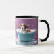 Super cute puppy in a bathtub with lots of soap bubbles - fun and cute motif for children! Sweet mug for children and more - designed with AI. Personalizable!