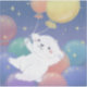 A cute fluffy white puppy with colorful balloons in night sky filled with stars