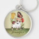 Cute Puppy with Butterfly, Ladybug and Tulips Key Ring