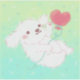 A cute illustration of a white puppy holding a heart shaped balloon for Valentine's Day and for dog lovers