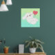 A cute illustration of a white puppy holding a heart shaped balloon for Valentine's Day and for dog lovers