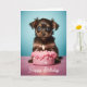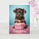 An cute puppy themed birthday card featuring a sweet puppy with a miniature pink cake. Personalise by editing the Birthday Card with your own message.