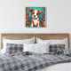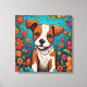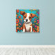 Cute Puppy with Whimsical Folk Art Flowers Canvas Print