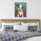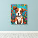 Cute Puppy with Whimsical Folk Art Flowers Canvas Print