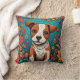 Cute Puppy with Whimsical Folk Art Flowers Cushion