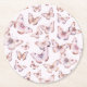 Cute Purple and Pink Butterfly Pattern Baby Shower Round Paper Coaster
