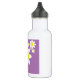 This adorable water bottle features white flowers with a purple background and a customisable name.