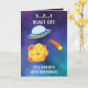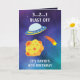 Cute Purple Blue Space Flying Saucer 8th Birthday Card
