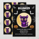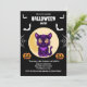 Black Purple kawaii cat moon on with bats Jack-o'-lantern pumpkins and webs black background kids Halloween Party Invitation