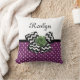 Cute Purple Dots Green Rose Chevron Bow With Name Cushion