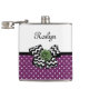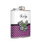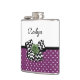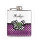Cute Purple Dots Green Rose Chevron Bow With Name Hip Flask