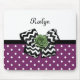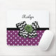 Cute Purple Dots Green Rose Chevron Bow With Name Mouse Mat