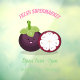 This cute purple mangosteen is drawn in fun cartoon illustration style. Lots of tropical fruit fun!