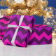 A roll of wrapping paper featuring a beautiful pattern design of purple and pink chevrons.