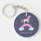A cute personalised girls pink and purple rainbow unicorn keychain. Personalise it for your little girl. Great for back to school. Designed for you by Blackberry Boulevard.