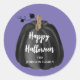 Cute Purple Script Pumpkin Happy Halloween Classic Round Sticker