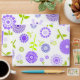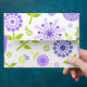 Gorgeous, colourful design featuring retro style drawing of flowers and leaves on a light background. Modern and retro pattern in purple and white. Sweet, elegant and stylish gift for every woman.