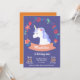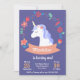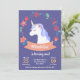 Cute purple unicorn closing its eyes, floral birthday invitation template that you can replace with your information and birthday party's details