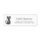 A cute return address label which has a little black cat to the left of the label, created in a whimsical, sketch style. Easily customize the dark grey typography with your name and contact details.