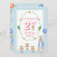Cute bunny Rabbit pink font 2nd birthday party invitation with carrot cakes and balloons. Plaid frame with vegetables of carrots and radishes accents. Perfect for the sweetest bunny first birthday party. Little girl birthday party.